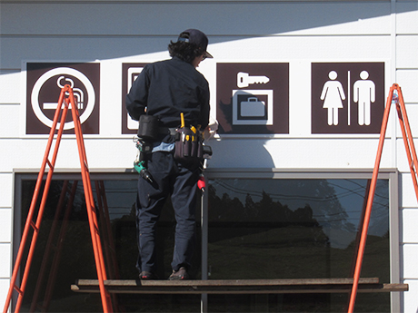 | 看板製作取付作業 | カルプ切文字取り付け | パネル看板取り付け |