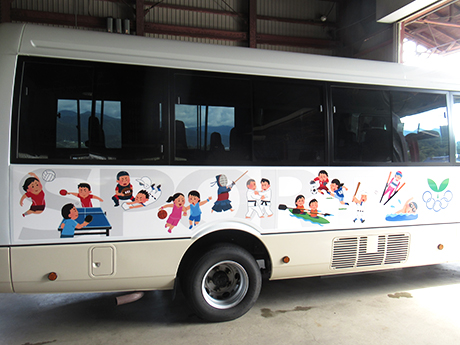 バスにデザインシート貼り込み | 人形館パネル看板 | パネル看板製作取り付け |