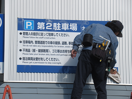 看板製作取付作業 | カルプ切文字取り付け | パネル看板取り付け |